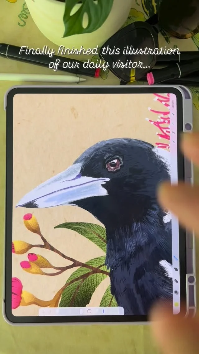 Each illustration is designed from initial pencil sketch to colour rendering, then repeated in an intricate floral pattern in vibrant colours.
