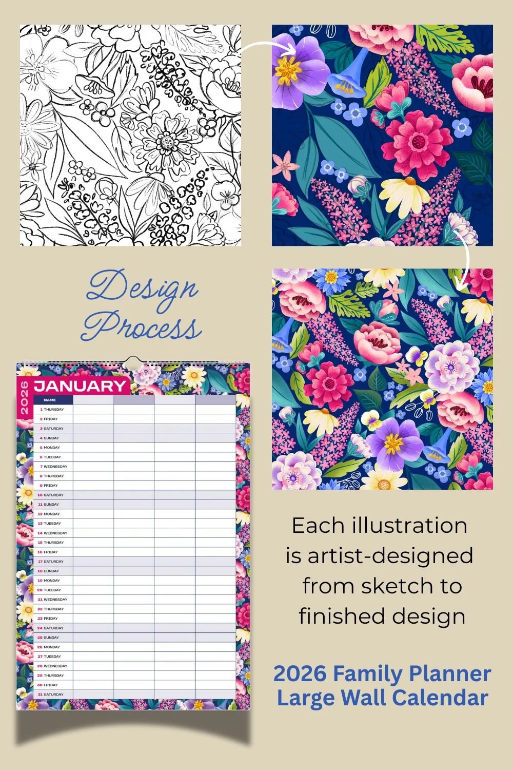 While practicality was essential, I also wanted this planner to be something you’d genuinely enjoy having on your wall. Each month features floral and botanical artwork, bringing a soft, calming presence to busy family spaces like kitchens, home offices or family hubs. The floral designs are inspired by nature and created to feel timeless rather than trendy, so they sit beautifully in a wide range of interiors.